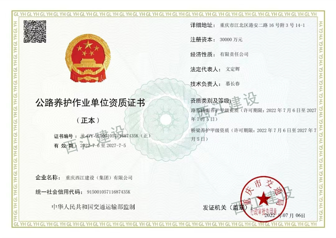 重慶西江建設(shè)(集團(tuán))有限公司成立于1997年12月,注冊(cè)地址:重慶市江北區(qū)港安二路16號(hào)附3號(hào)14-1。公司注冊(cè)資金3億元,建設(shè)所需資質(zhì)項(xiàng)目齊全... [詳細(xì)]